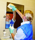 - санитарно- гигиеническая обработка туалетов с удалением всех видов загрязнений с сантехники (унитазов, умывальников, писсуаров, кранов), пола, стен, подоконников, зеркал, перегородок, дверей и дверных ручек с использованием специальных химических средств;